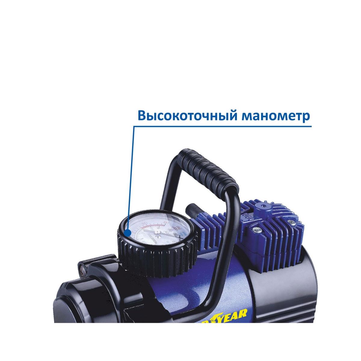 Воздушный автомобильный компрессор Goodyear GY-35L – оригинальный лицензионный продукт высокого качества, незаменимый помощник в дороге для любого автолюбителя. Компактное устройство предназначено для накачивания автомобильных и велосипедных шин, резиновых лодок, мячей, матрасов.