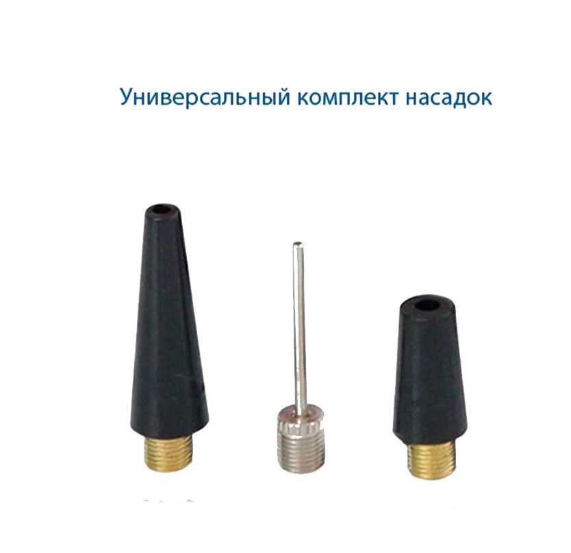 В комплект входит набор насадок-переходников, который делает компрессор универсальным в использовании.