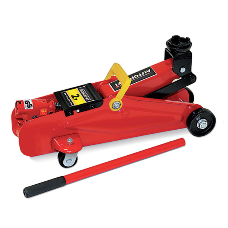 Автомобильный подкатной домкрат с простой и надежной конструкцией. Работает на любой твердой и ровной поверхности. Домкрат поднимает до 2 тонн веса на максимальную высоту 30,5 см.