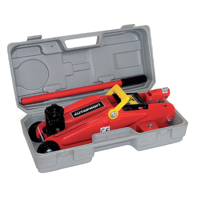 Автомобильный подкатной домкрат с простой и надежной конструкцией. Работает на любой твердой и ровной поверхности. Домкрат поднимает до 2 тонн веса на максимальную высоту 33 см. Поставляется в удобном для хранении и переноске пластиковом кейсе.