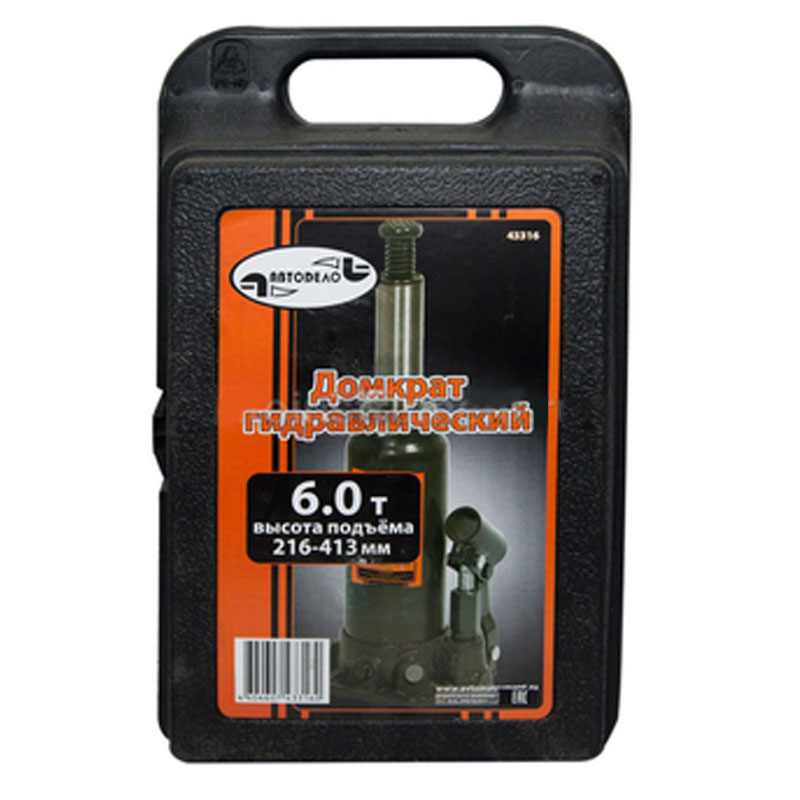 Технические характеристики товара «Домкрат АвтоДело гидравлический 6т 216-413мм кейс 43316»