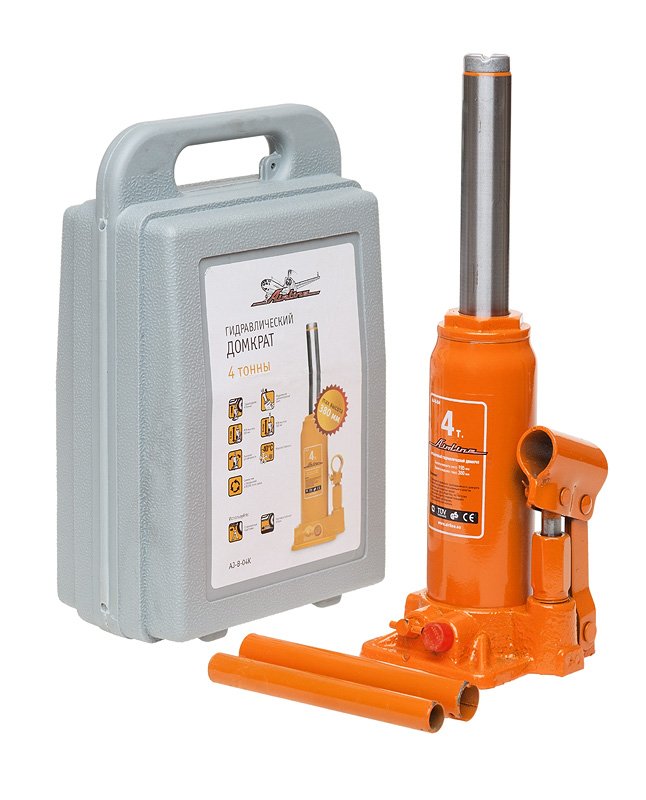 Купите домкрат гидравлический бутылочный в кейсе AIRLINE AJ-B-04K 195-380 мм 4т цена 2040 рублей. Также в каталоге 32 модели домкратов AIRLINE и домкратов типа «бутылочный гидравлический» других производителей.