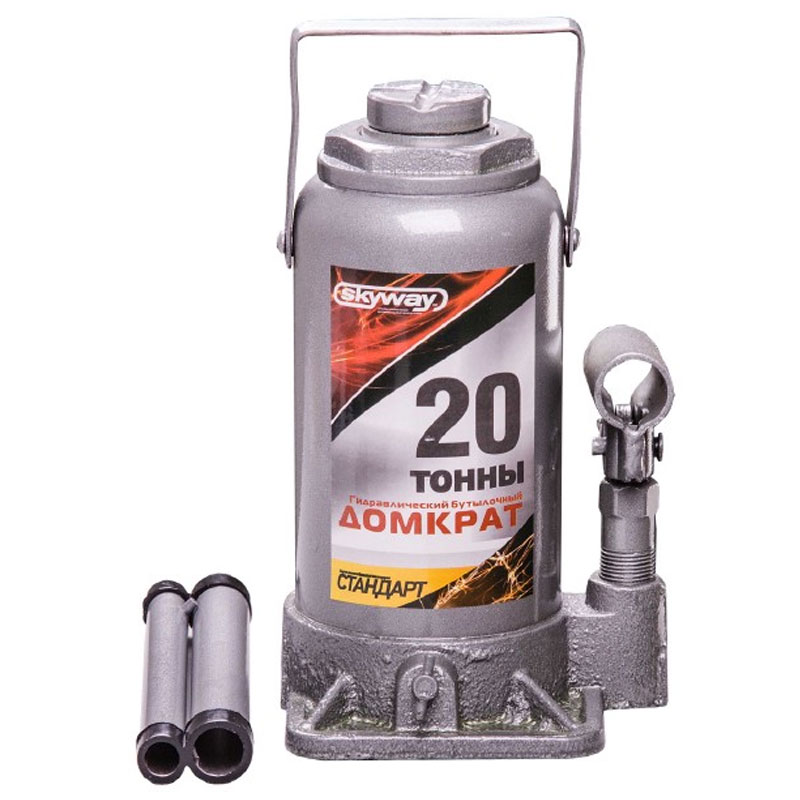 Домкрат гидравлический бутылочный 20т h 225-425мм SKYWAY STANDART - необходимость заменить колесо может возникнуть в любую минуту, справиться с такой задачей и при этом затратить минимум собственных сил, поможет компактный и надежный гидравлический бутылочный домкрат SKYWAY. При небольших габаритах, он может поднять не только легковой автомобиль, но также грузовой транспорт до 20т. Домкраты серии STANDART сочетают в себе простую и надежную конструкцию. Корпус и детали полностью металлические, что обеспечивает длительный срок безотказной службы по доступной цене.