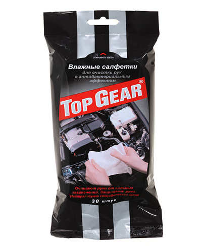 Влажные салфетки рук Top Gear №30 обладают ярко выраженной антимикробной активностью.