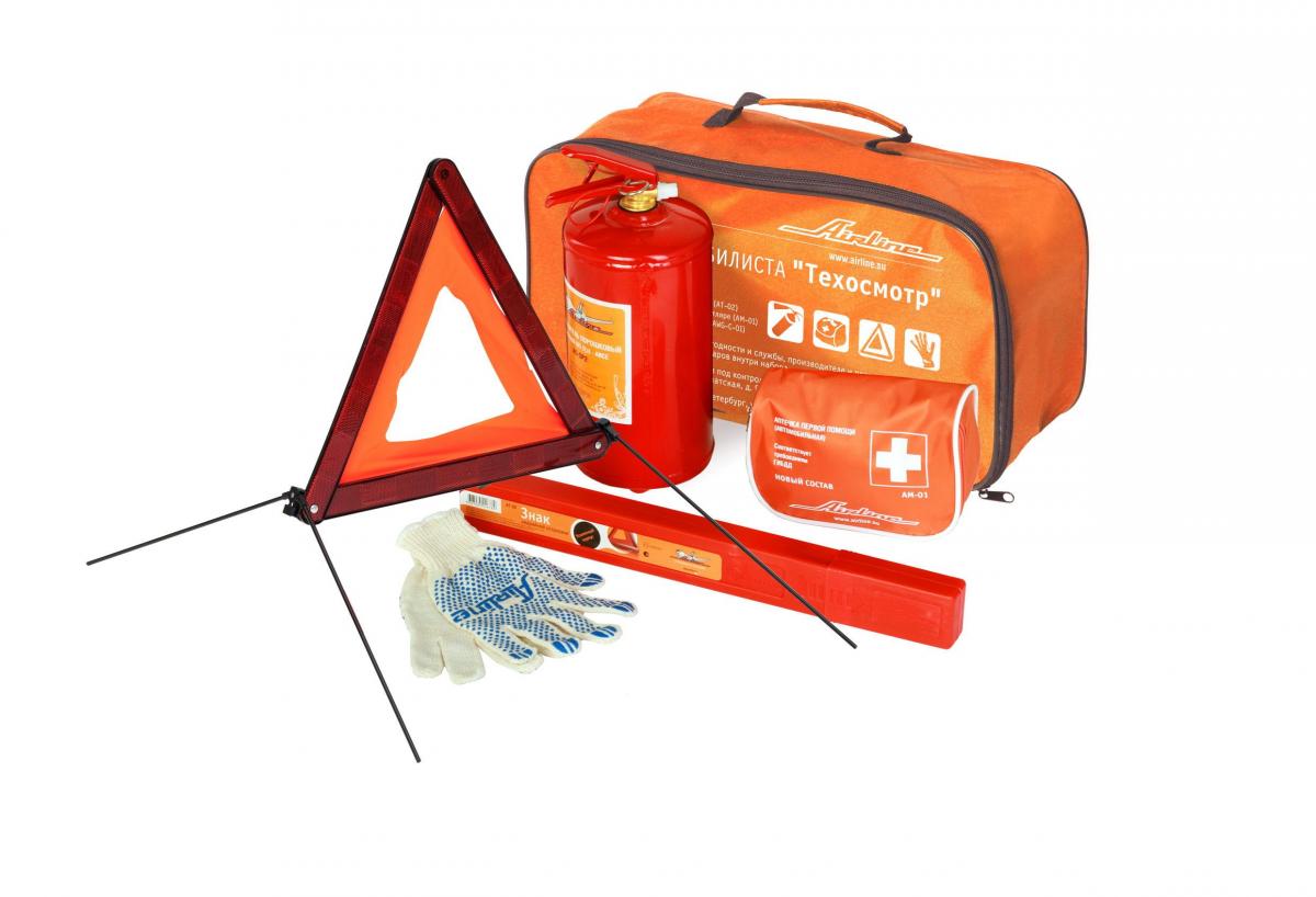 Главная / Каталог автомобильных товаров / Внутрисалонные аксессуары / Автонаборы / Набор автомобилиста Техосмотр (огнетушитель ОП-2, знак, аптечка, перчатки) Airline ANA-01
