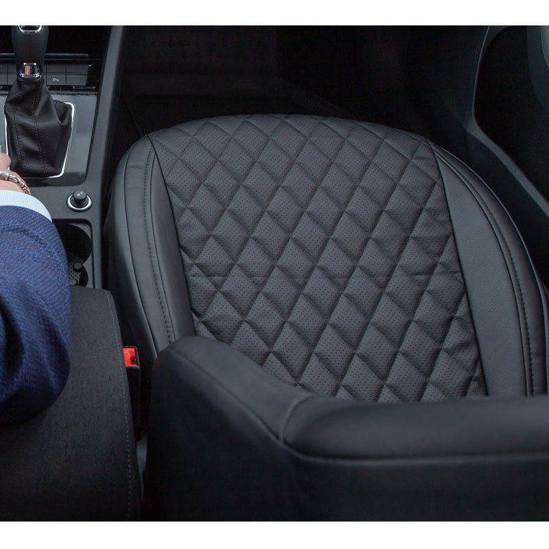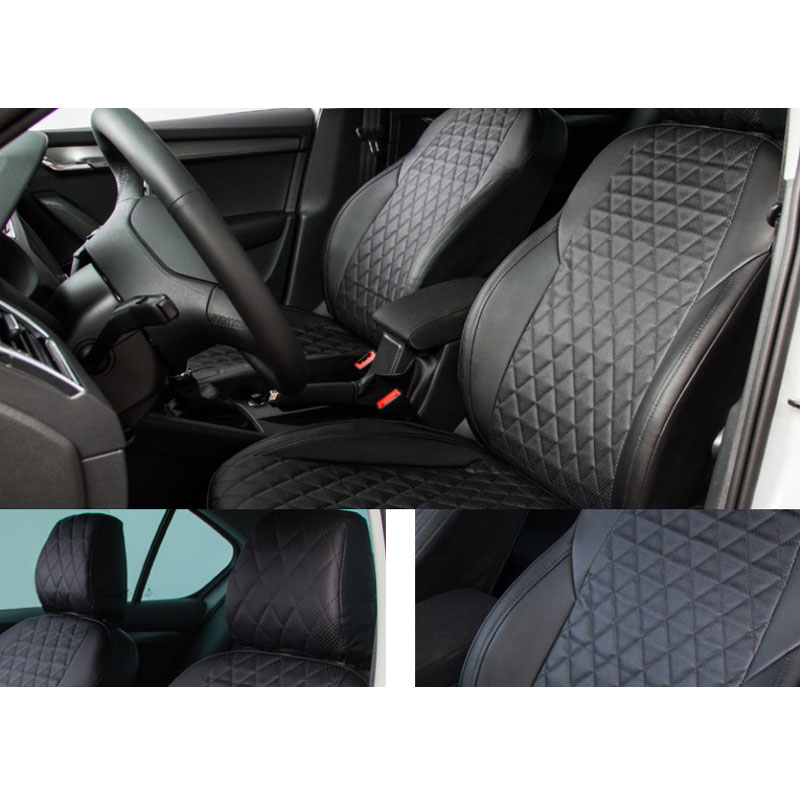 Несколько лет назад чехлы их экокожи с рисунком ромб стали одним из главных трендов. Их популярность среди автомобилистов объясняется стильным внешним видом: автомобильные чехлы преобразуют салон, делают его более презентабельным и аккуратным. Материал изделий признан на 100% экологически безопасным и гипоаллергенным. Чехлы из экокожи с рисунком ромб подбираются под определенную модель автомобиля, поэтому они идеально подходят к конструкции кресел и учитывают наличие ремней безопасности, подлокотников и подголовников. Кроме того, все изделия снабжены техническим швом для подушек безопасности.