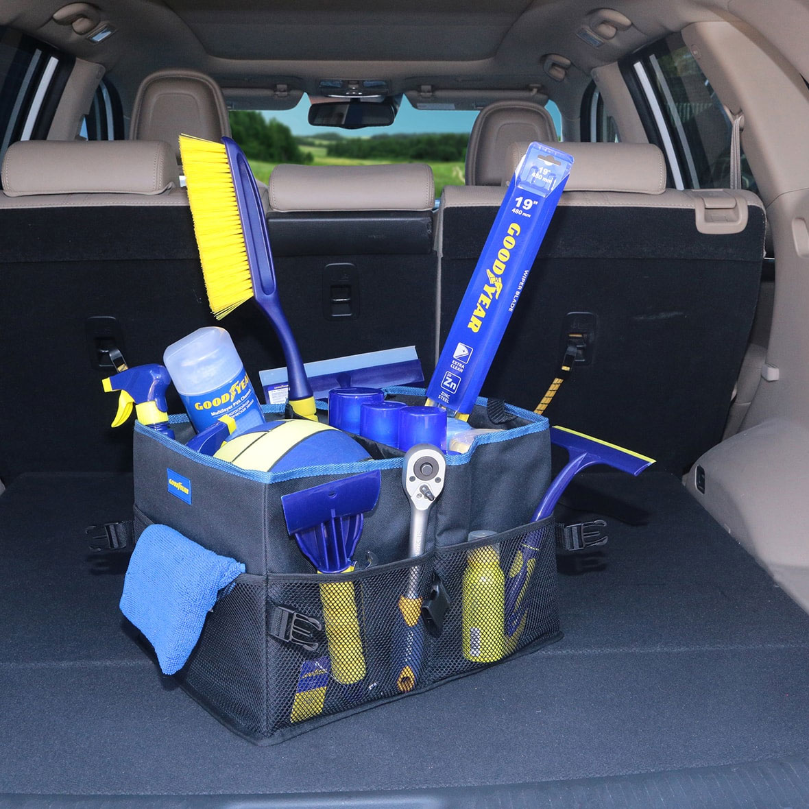 Главная / Каталог автомобильных товаров / Внутрисалонные аксессуары / Органайзеры для авто / Органайзер багажника Goodyear GY001002 складной 2 секции