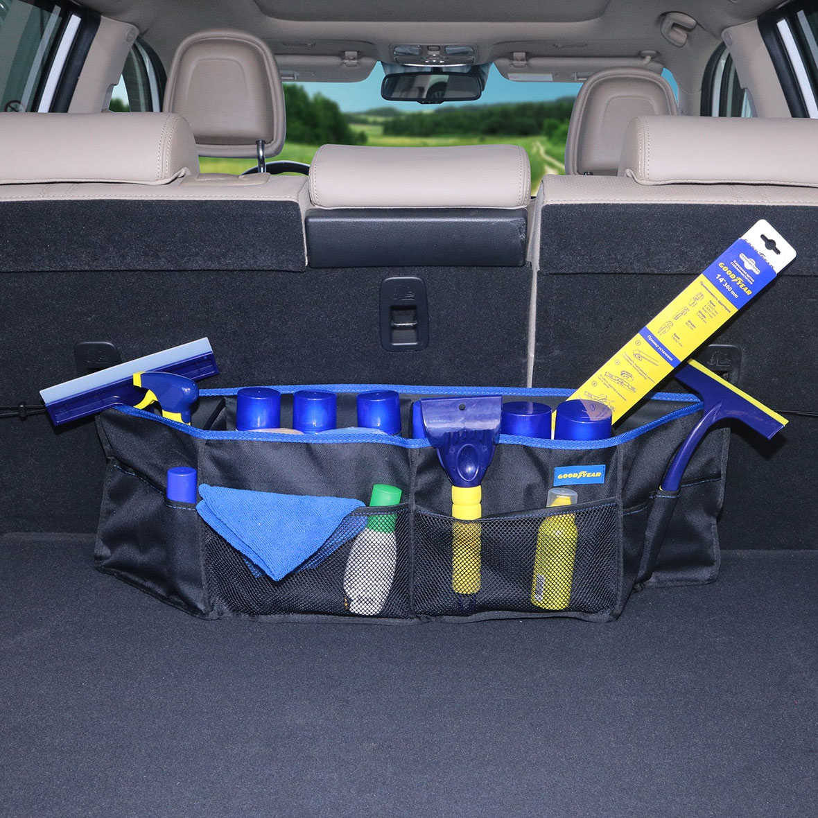 Главная / Каталог автомобильных товаров / Внутрисалонные аксессуары / Органайзеры для авто / Органайзер багажника Goodyear GY001004 подвесной для седана