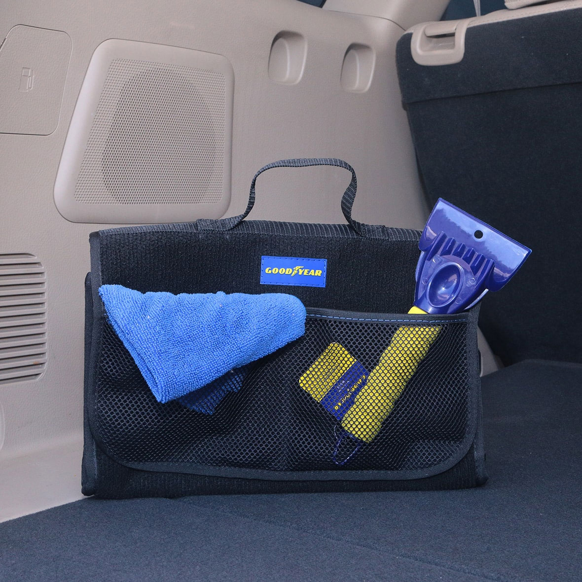 Главная / Каталог автомобильных товаров / Внутрисалонные аксессуары / Органайзеры для авто / Органайзер багажника Goodyear GY001007 сумка из карпета