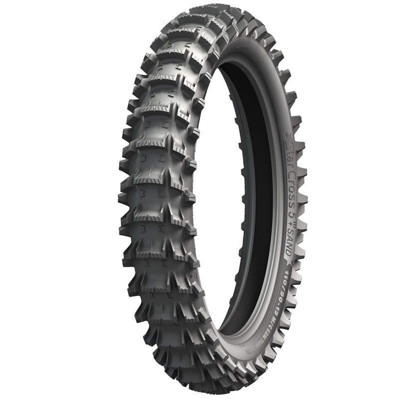 Версия Michelin StarCross 5 Sand (для песчаных поверхностей) для заднего колеса обладает специально разработанным рисунком со специальными “ковшами”, которые помогают шинам эффективнее работать на песке.